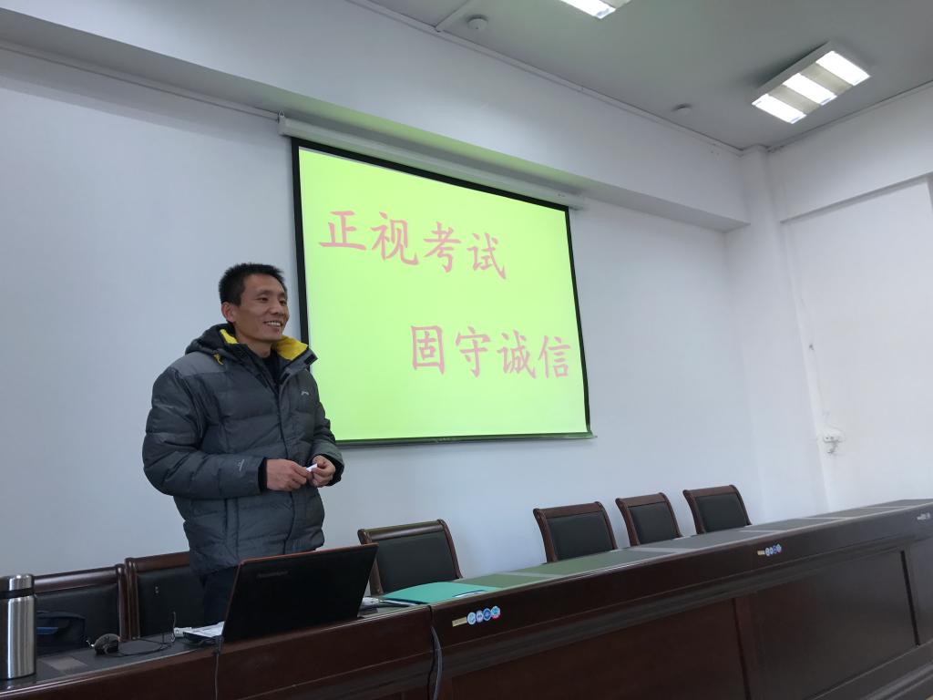 期末考试临近,全体学生进入备考阶段,2017级运动训练专业的同学们迎来步入大学第一次期末考试。必赢召开考务会,班主任刘忠良老师召开“ 读书立品 诚信考试”主题班会,宣传考试期间诚信与考风考纪。