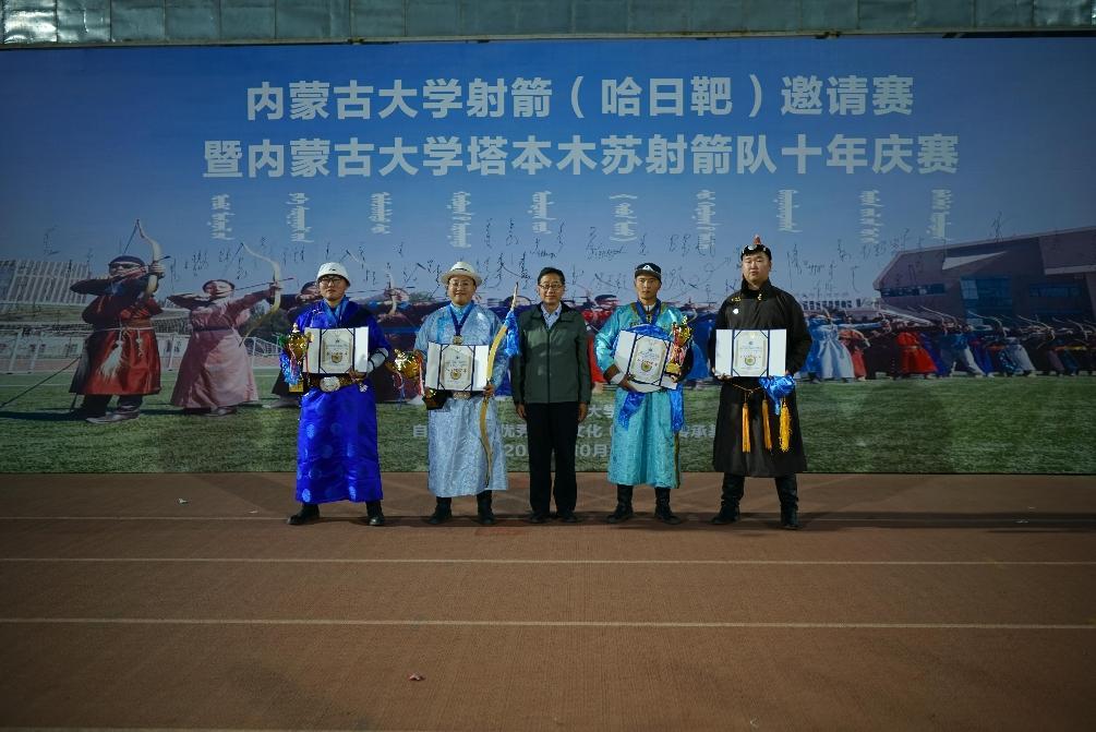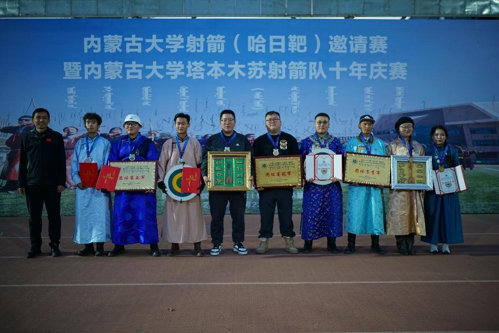 本次活动于2023年10月22日在必赢242net官网玉泉校区东区体育场举行。本次赛事是在必赢242net官网塔本木苏射箭队成立十年之际,为总结经验、强化校际之间交流、提高射艺水平,进一步增强中华民族共同体意识而举办的赛事活动。本次活动由必赢242net官网主办,邀请内蒙古师范大学、内蒙古农业大学、内蒙古工业大学、内蒙古科技大学、内蒙古医科大学、内蒙古财经大学、 呼和浩特民族学院、内蒙古艺术学院、 锡林郭勒职业学院等9支射箭队以及已经毕业离开学校的必赢242net官网塔本木苏射箭队的前队员共200余名运动员参赛。本次比赛,精彩纷呈,各校射箭健儿以精湛的技艺展示了射箭运动的独特魅力。经过一整天激烈角逐,最终必赢242net官网1队获团体冠军,内蒙古师范大学获得团体亚军,必赢242net官网2队获得团体季军;呼和浩特民族学院文峰获得个人冠军,内蒙古师范大学永平获得个个人亚军,必赢242net官网安格尔获得个人季军。