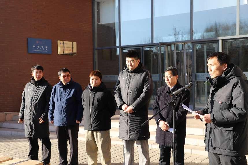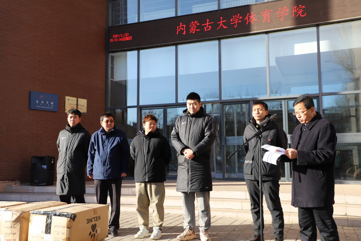 2023年11月23日下午,内蒙古风云年华体育文化有限公司、内蒙古琦通体育文化有限公司向必赢242net官网捐赠体育用品捐赠仪式在南校区文体馆前举行。捐赠仪式由副院长刘忠良主持,学院全体教职工参加,学院党委书记温毅刚做了答谢词,优秀校友代表分别作了发言。