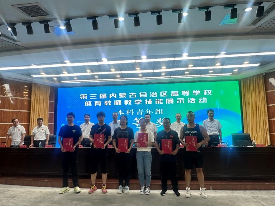 近日,在自治区高等学校体育教师技能展示活动中,我校参赛教师王林堃(总分89.36)获本科青年组第二名,潘奇志(总分83.35)、吕丹(总分80.28)、白帆(总分79.85)获本科青年组第三名。
