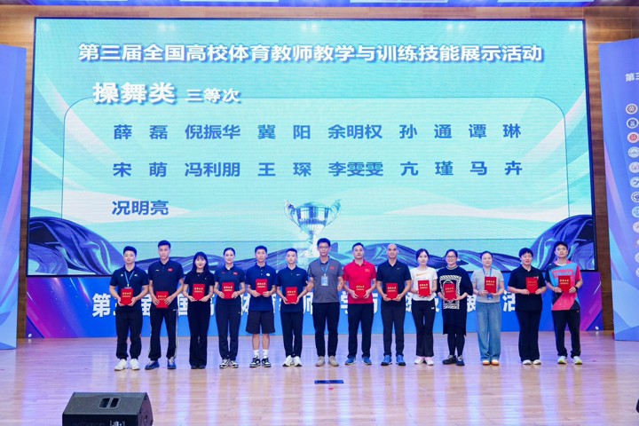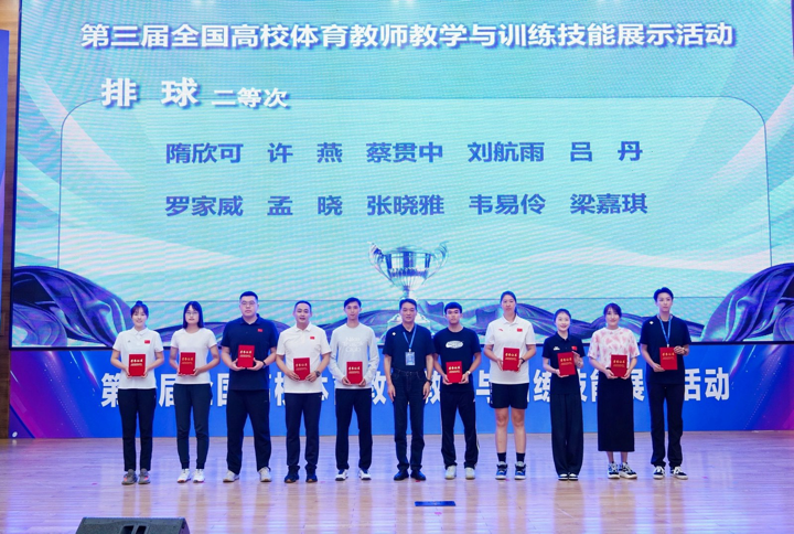 在2024年10月11-12日举行的第三届全国高校体育教师教学与训练技能展示活动中,我校必赢242net官网副院长李慧君教授带队参加,教师许燕、吕丹荣获排球项目二等奖,马卉荣获操舞类项目三等奖。本次大赛由全国高等学校体育教育指导委员会主办,在华南理工大学举办,是教育部主办的高校体育教师技能比赛的最高级赛事。