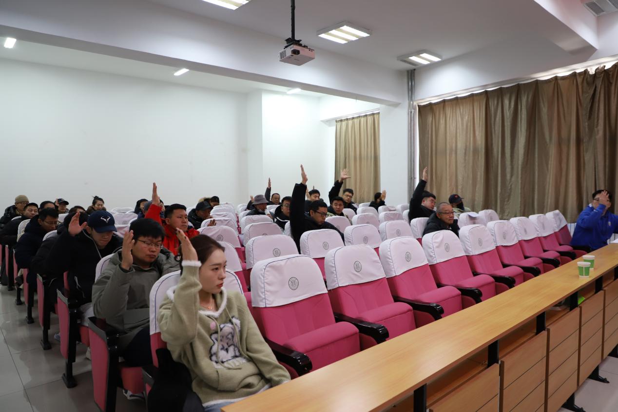 会议在激昂的国歌声中拉开序幕。大会听取了学院领导班子的述职述廉报告,对领导班子进行了民主测评。会上,院长王文杰作《学院年度工作报告》,副院长李慧君作学院《财务年度工作报告》,学院党委副书记刘忠良作学院《年终绩效分配方案报告》。