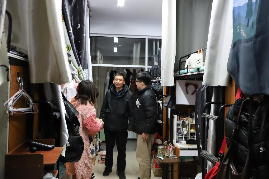刘忠良副书记一行对宿舍的水电设施、宿舍卫生等情况进行了逐一排查,仔细查看各类设施状态,确保学生返校后能够正常生活、学习。同时,刘书记叮嘱已到校同学做好宿舍卫生,调整学习心态,以更好的精神面貌迎接新学期。