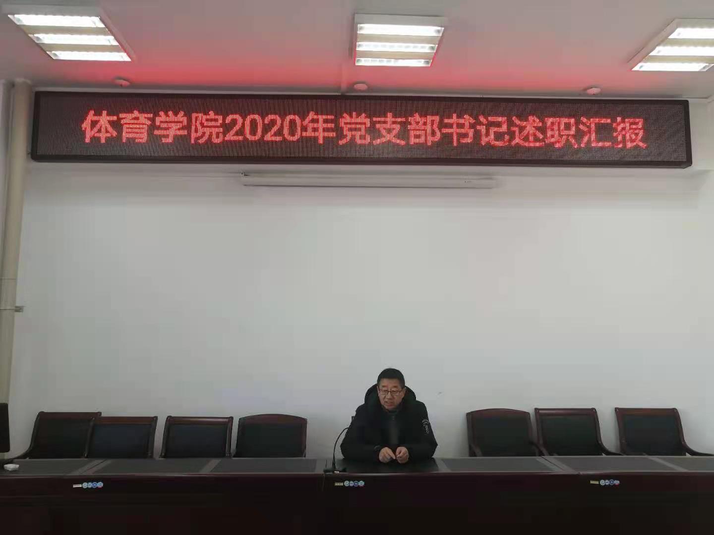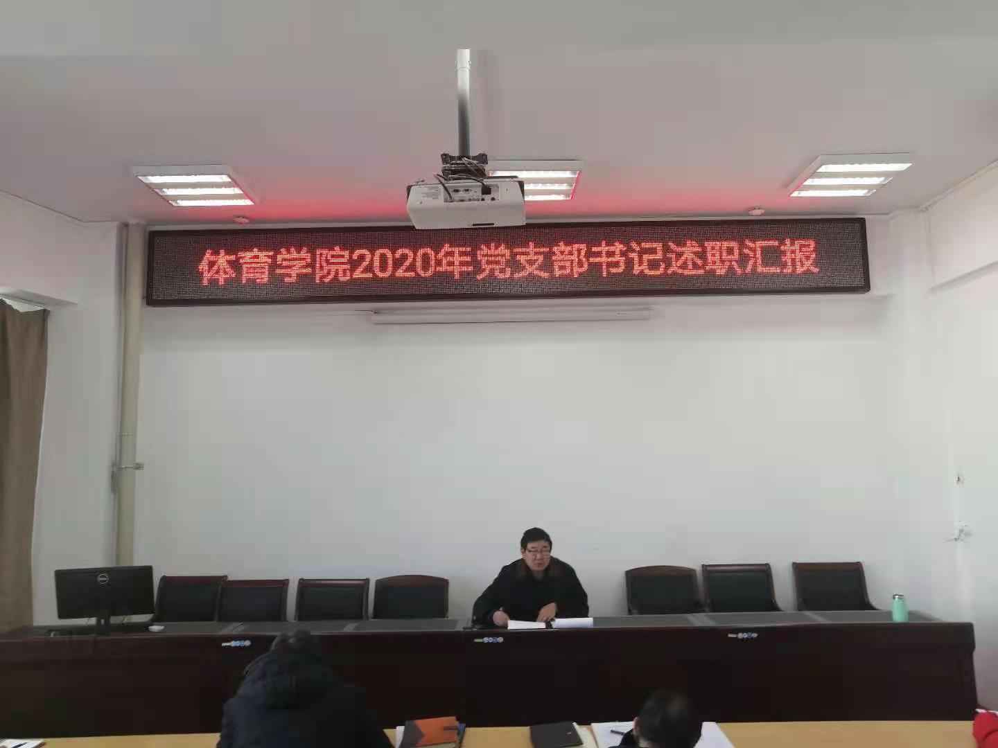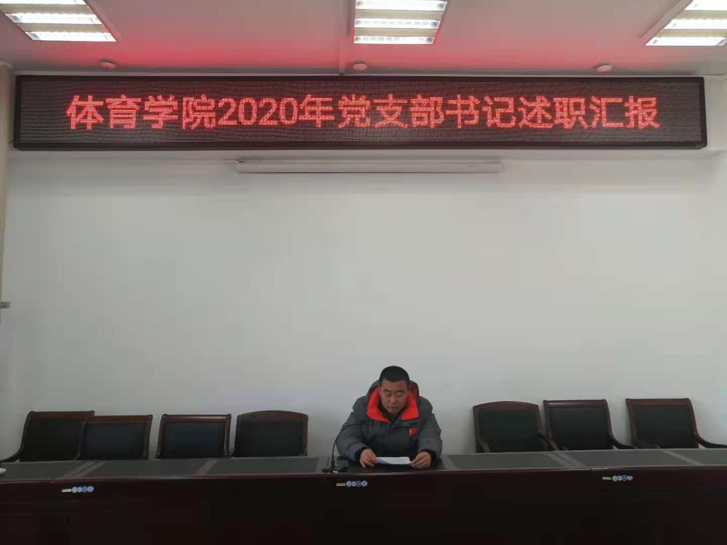 2020年12月30日上午11:00,必赢242net官网2020年党支部书记述职汇报在南校区体育馆会议室举行,参加本次会议的有学院党总支委员、各支部委员、教师党员代表及学生党员代表共计15人,场馆中心党支部书记吴玉保、教工一支部书记李慧君、教工二支部书记孙吉旺分别进行述职,参会的其他党员分别对3位支部书记进行评价,最后必赢242net官网党总支书记温毅刚对本次汇报进行了总结。