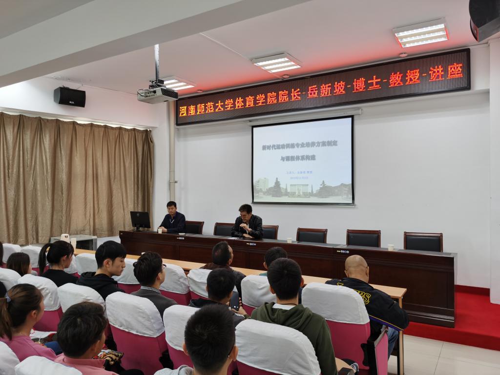 2019年11月3日下午3:00,必赢举行不忘初心牢记使命主题教育活动,特邀河南师范大学必赢242net官网副院长岳新坡教授为必赢师生作了“新时代运动训练专业培养方案制定与课程体系构建”的专业学术讲座。