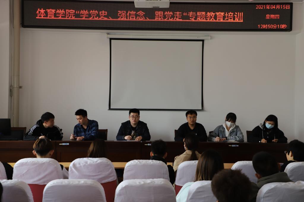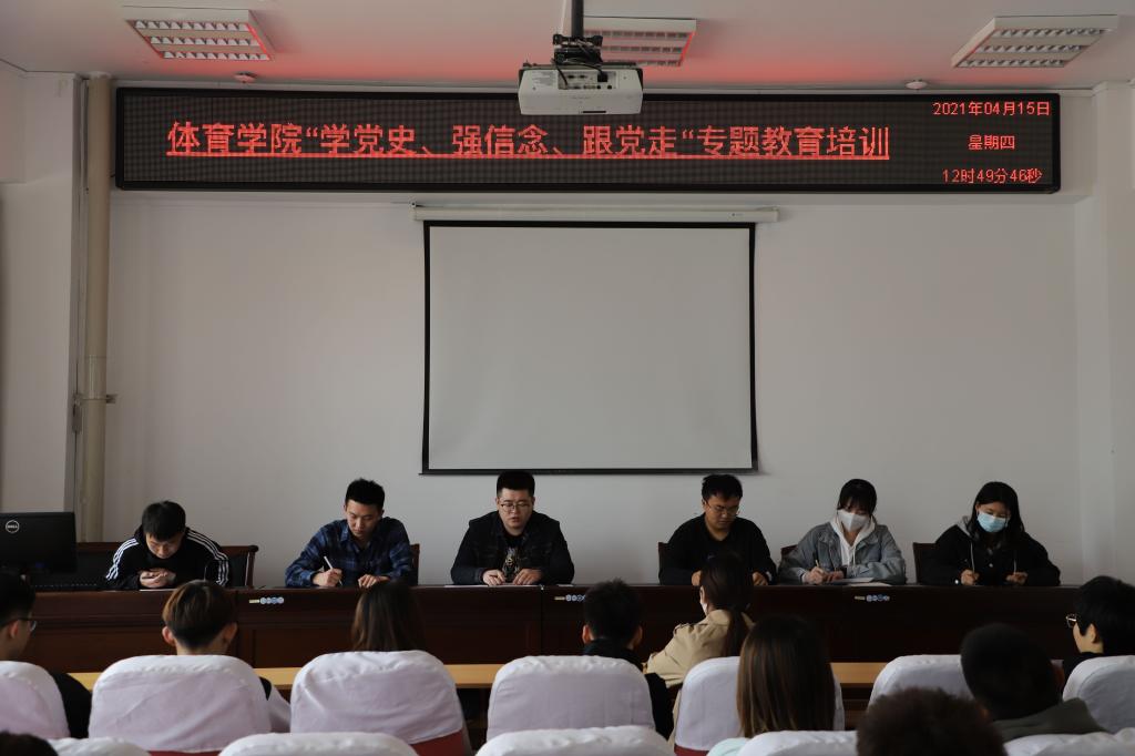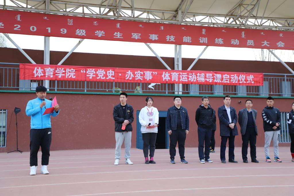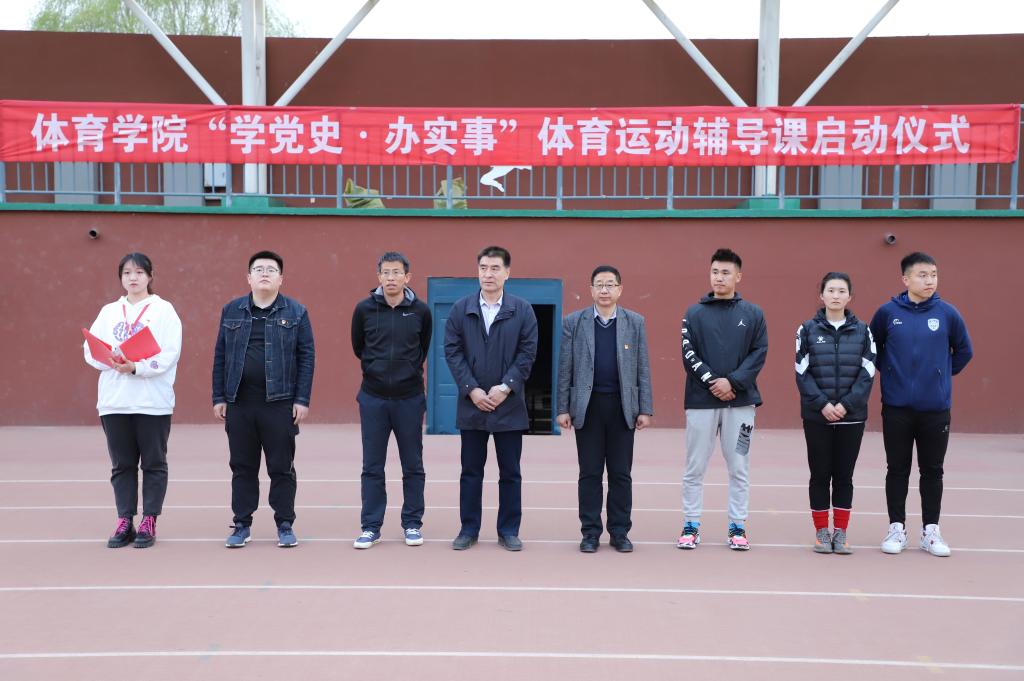 2021年4月19日19:00必赢242net官网“学党史 办实事”体育运动辅导课启动仪式在南校区操场举行。出席启动仪式的学院领导和老师有必赢242net官网党总支书记温毅刚、院长于志海、团总支负责人赵郑、田径专项教师李慧君、沈长明,文学与新闻传播学院、历史与旅游文化学院、哲学学院、外国语学院、法学院、公共管理学院、化学化工学院、生命科学学院、生态与环境学院等10个学院的212同学参加了启动仪式。这次活动由必赢242net官网学生党支部、团总支、学生会主办,必赢242net官网2018级学生、学院团总支兼职副书记马一辰主持了启动仪式。
