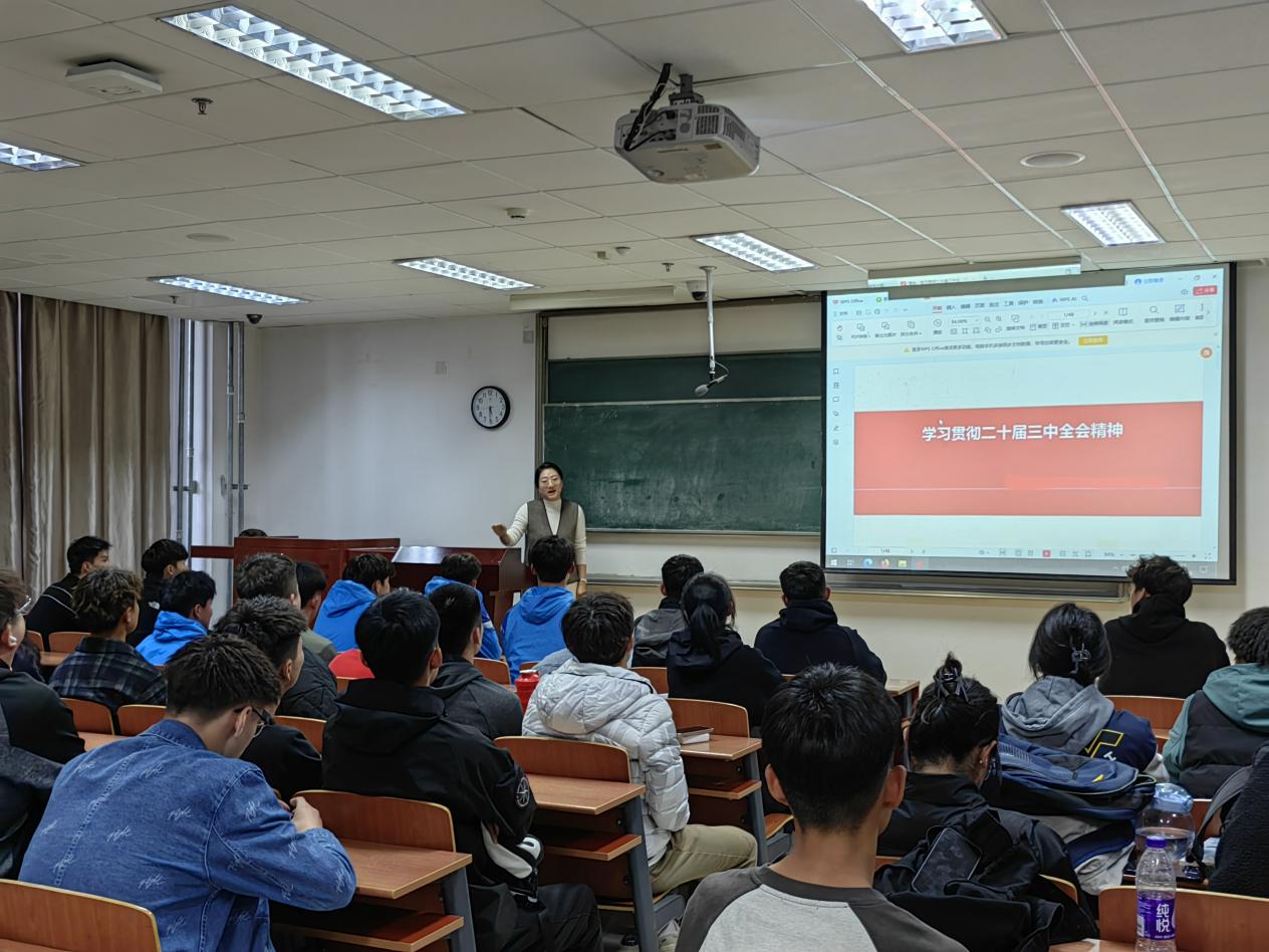 10月8日上午,必赢242net官网在卓越楼301举办“学习贯彻二十届三中全会精神”研习会,本次研习会由必赢“一站式”学生社区政治辅导员高哲主讲,学院50名同学参加。