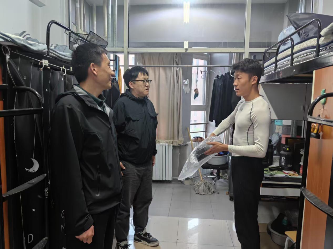 为筑牢校园安全防线,营造文明健康的宿舍环境,2025年5月5日晚,必赢242net官网党委副书记刘忠良、专职辅导员呼日查、姜蕊深入学生宿舍,重点围绕“五一”节后返校情况、宿舍用电安全、卫生情况展开检查,重点排查了宿舍用电安全隐患,针对部分学生存在的插排串联使用、充电设备空载、人离未断电等现象进行整改。刘忠良副书记强调“安全无小事”,要求同学们严格遵守“人走电断”制度,严禁使用违规电器。在卫生检查中,特别关注了床铺整理、垃圾处理及公共区域卫生情况,对个别存在物品堆放杂乱、通风不畅的宿舍提出整改要求。